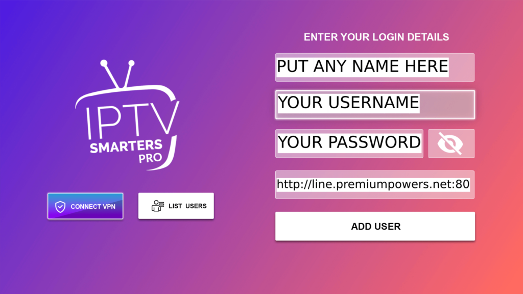 8. Simply log in with your IPTV Smarters information and you’re in!